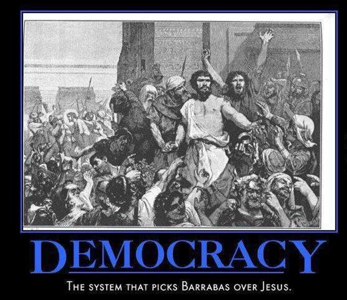 I was thinking about this topic when I came across Texas95‘s post “Democracy? No! James Madison explains“. I’ll admit, I probably shared his opinion of the problem and solution for most of my life. But with age and reading, I’ve come to the realization that it’s not education or information that has failed us. It’s a fundamental flaw in the design of the system and our human nature.