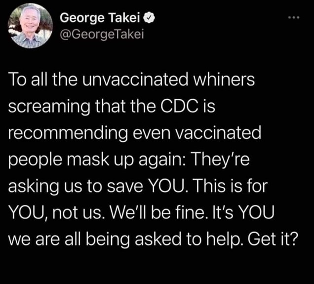 The narrative has seemed to turn, once again, from praising miracle vaccines which which were supposed to help limit the spread of the Delta to the unvaccinated actually causing its spread and prolonged endurance. And the icing on the proverbial statist crap cake is the notion that the vaxed are doing it for OUR protection! And that we owe them our thanks, respect, and obedience.